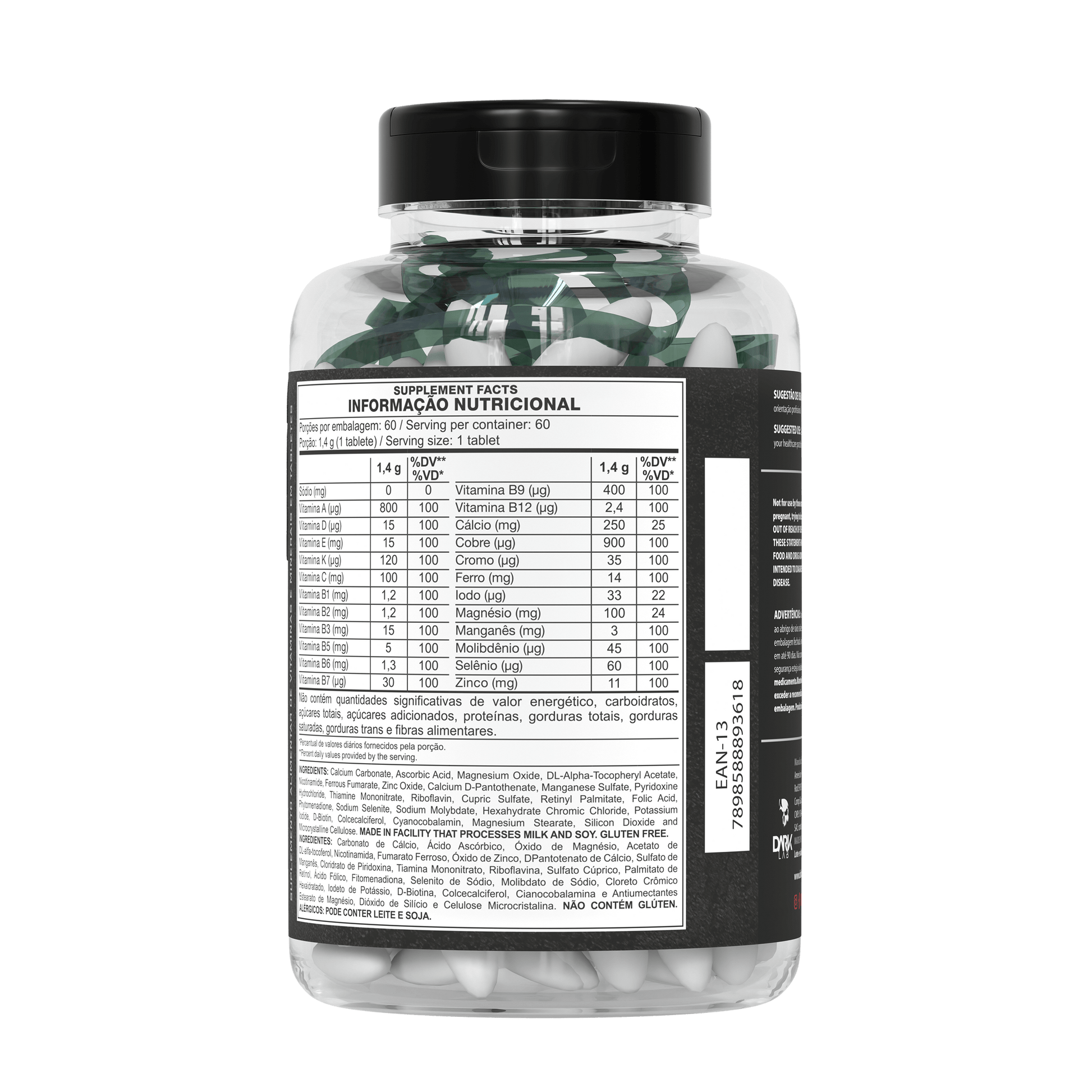O reforço que seu corpo precisa para funcionar em alto nível. Com vitaminas e minerais essenciais, o multivitamínico Dark Lab fortalece a imunidade e contribui para o metabolismo energético e a saúde geral.