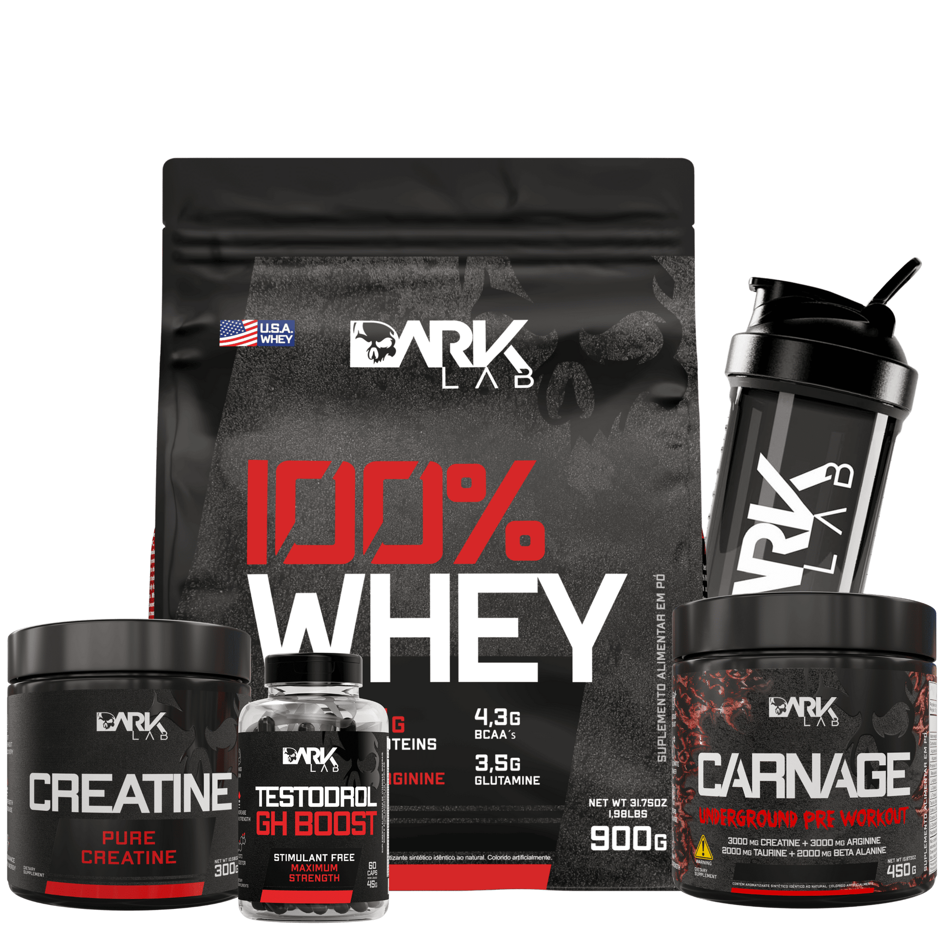 Potencialize seus treinos com o Kit Brutal Dark Lab, o combo completo para quem busca hipertrofia muscular, energia extrema, recuperação acelerada e aumento natural da testosterona. Composto pelos melhores suplementos da linha Dark Lab, este kit foi pensado para atletas que exigem resultados reais e performance de alto nível.